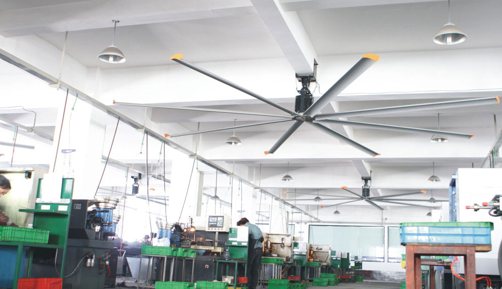 大型工業(yè)吊扇直徑達5-7米,功率為1.5千瓦,風(fēng)力柔和、無噪音,能滿足200-500平方米的室內(nèi)降溫、通風(fēng)等要求。